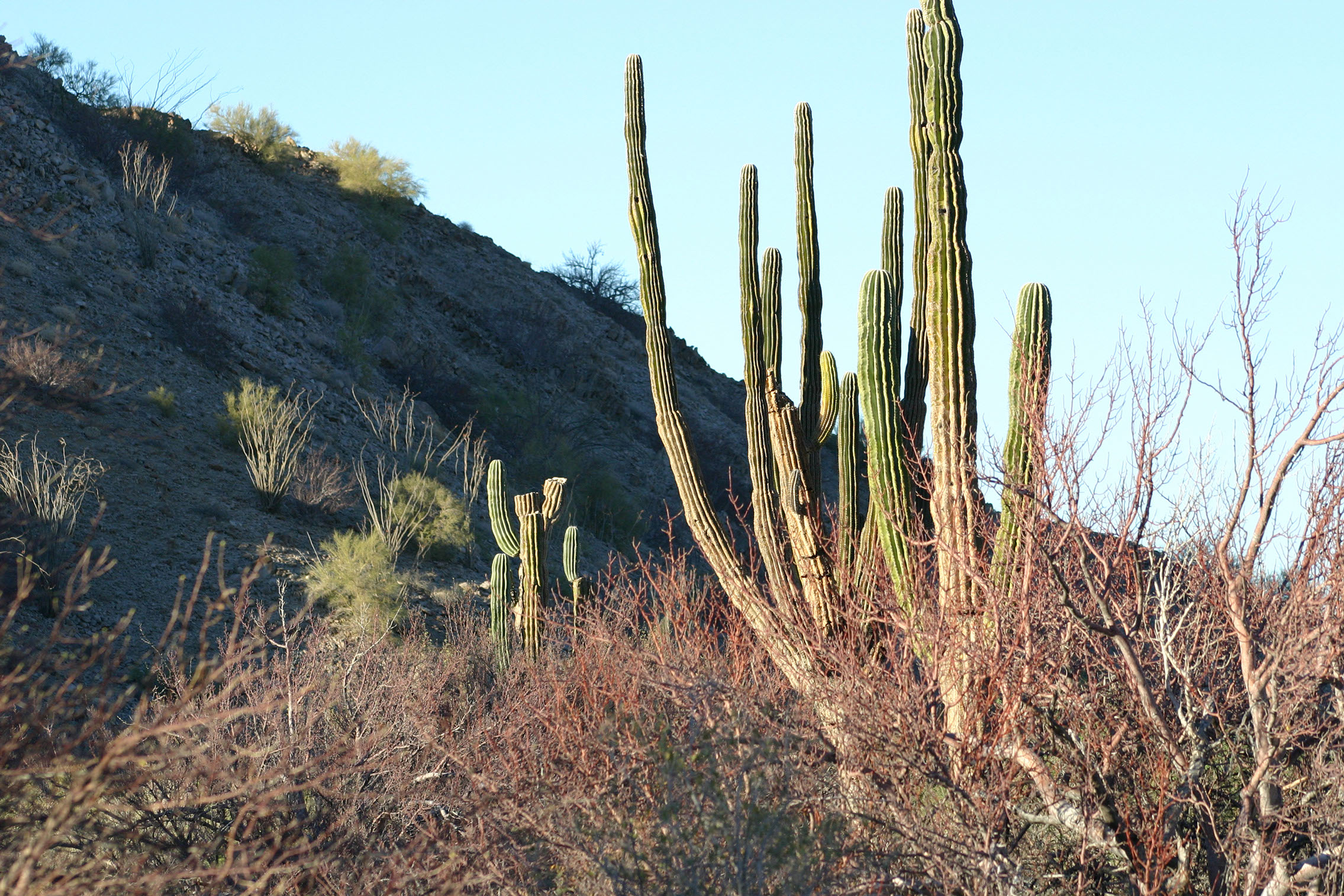 A stand of cardón cactus near the mountain foothills a mile West of the Cube
