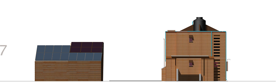Solar phases The Cube’s original photovoltaic system consisted of eight panels and eight batteries. Eight panels happened to fit the roof of the shed whose size was determined by the existing concrete slab [Phase 1].