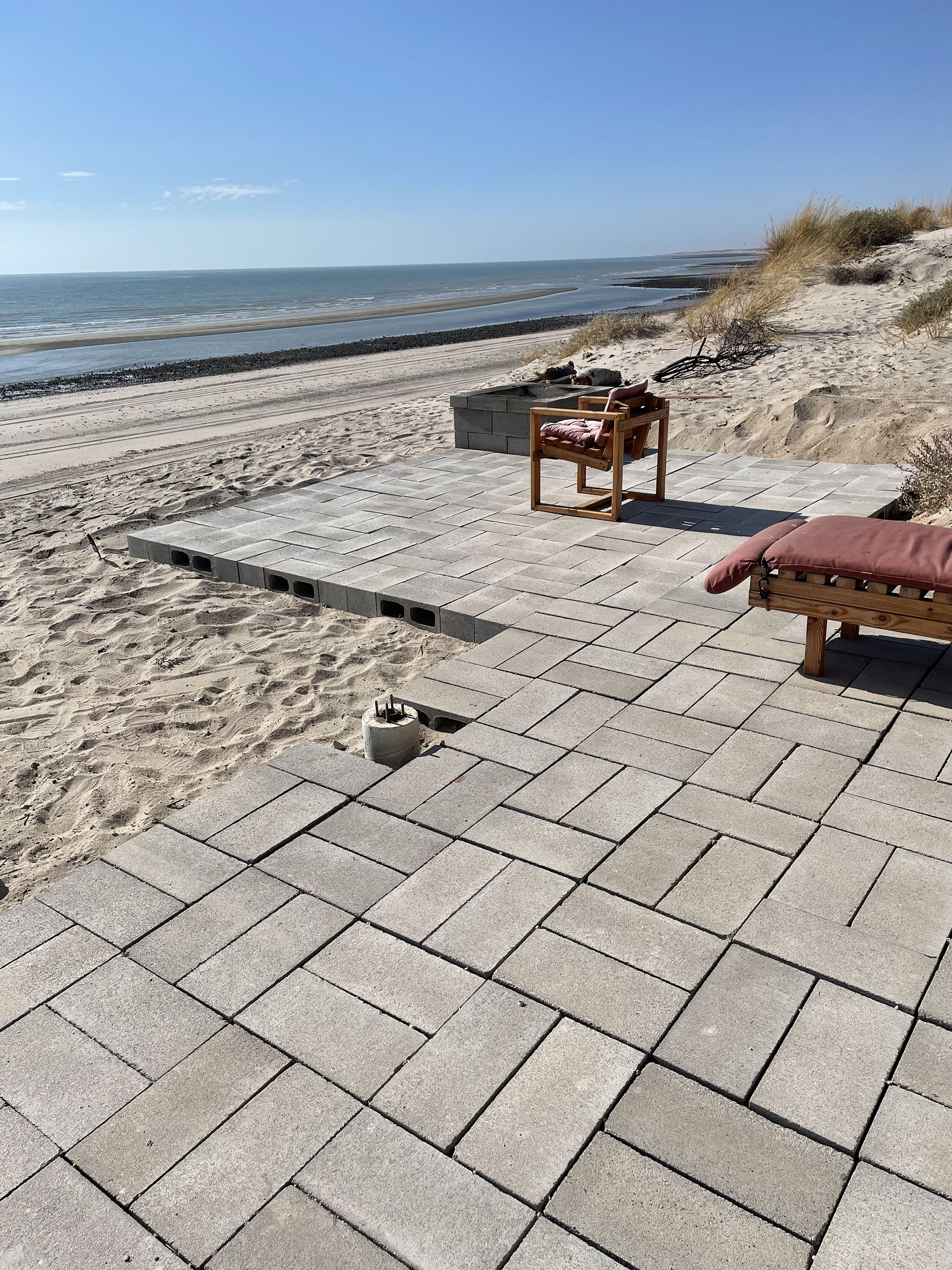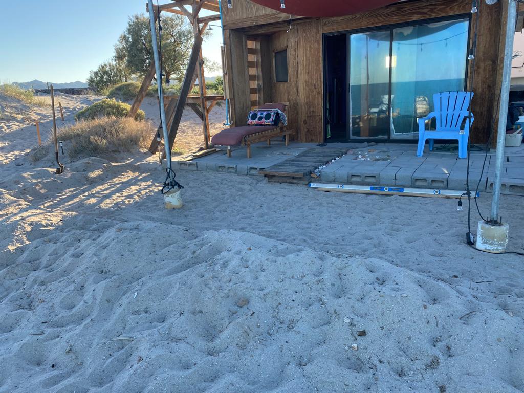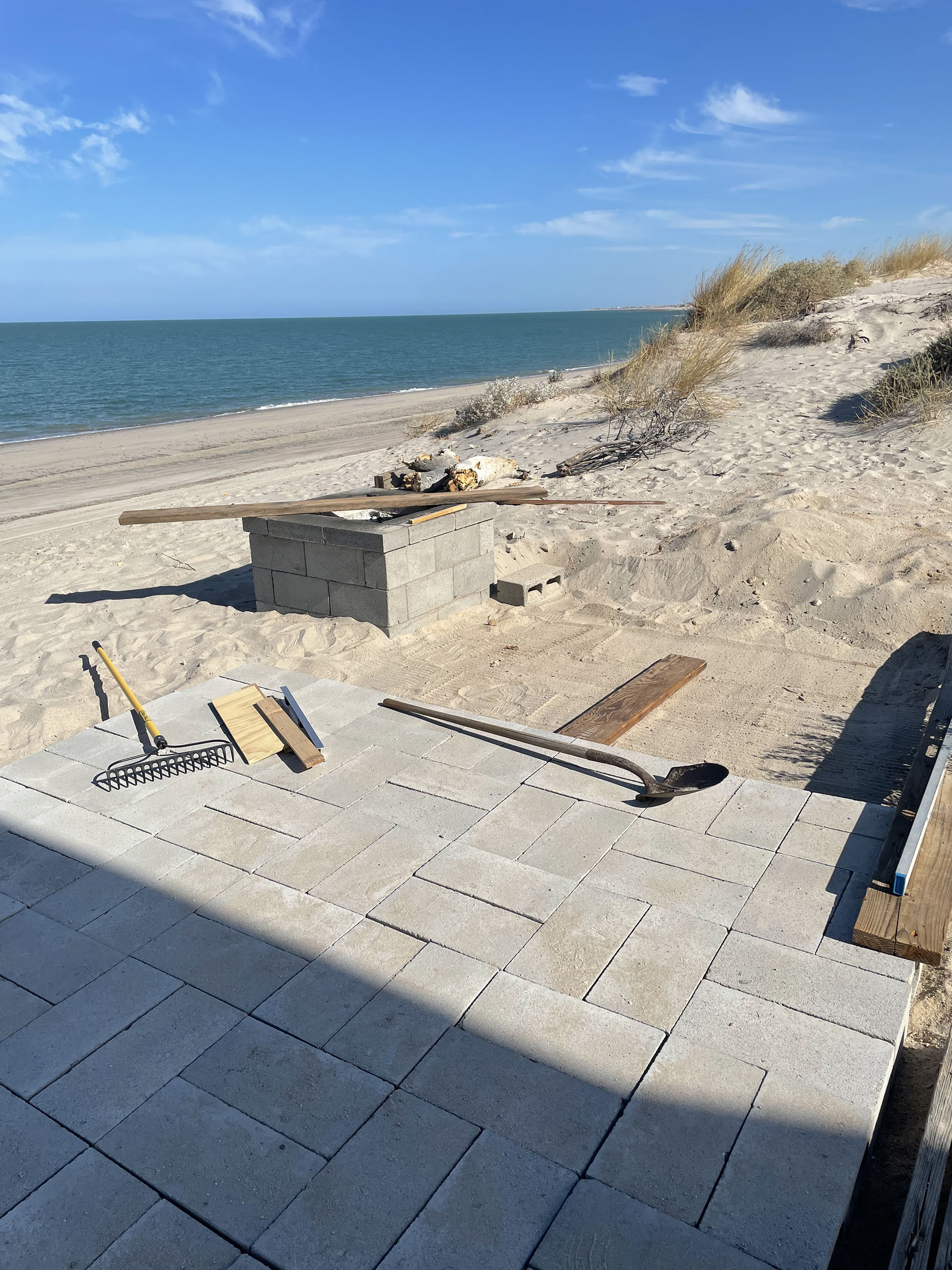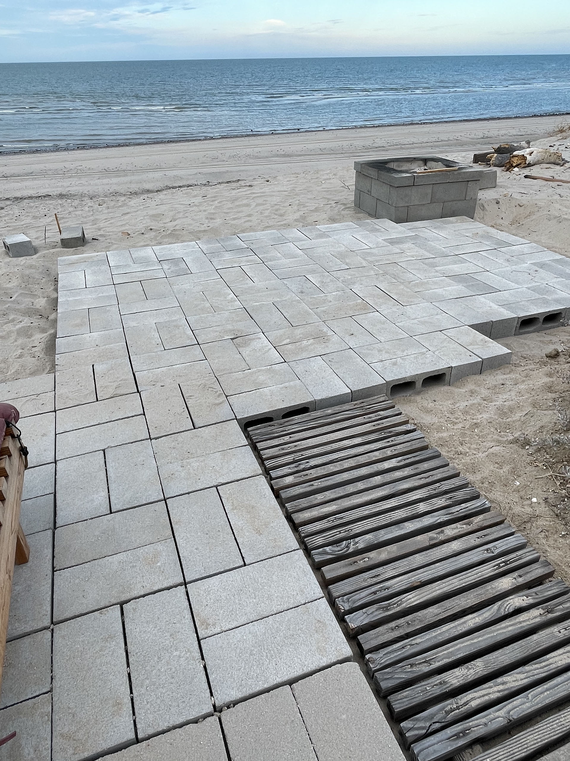 Sand in front of the Cube graded and ready for the cement block patio extension in 2022