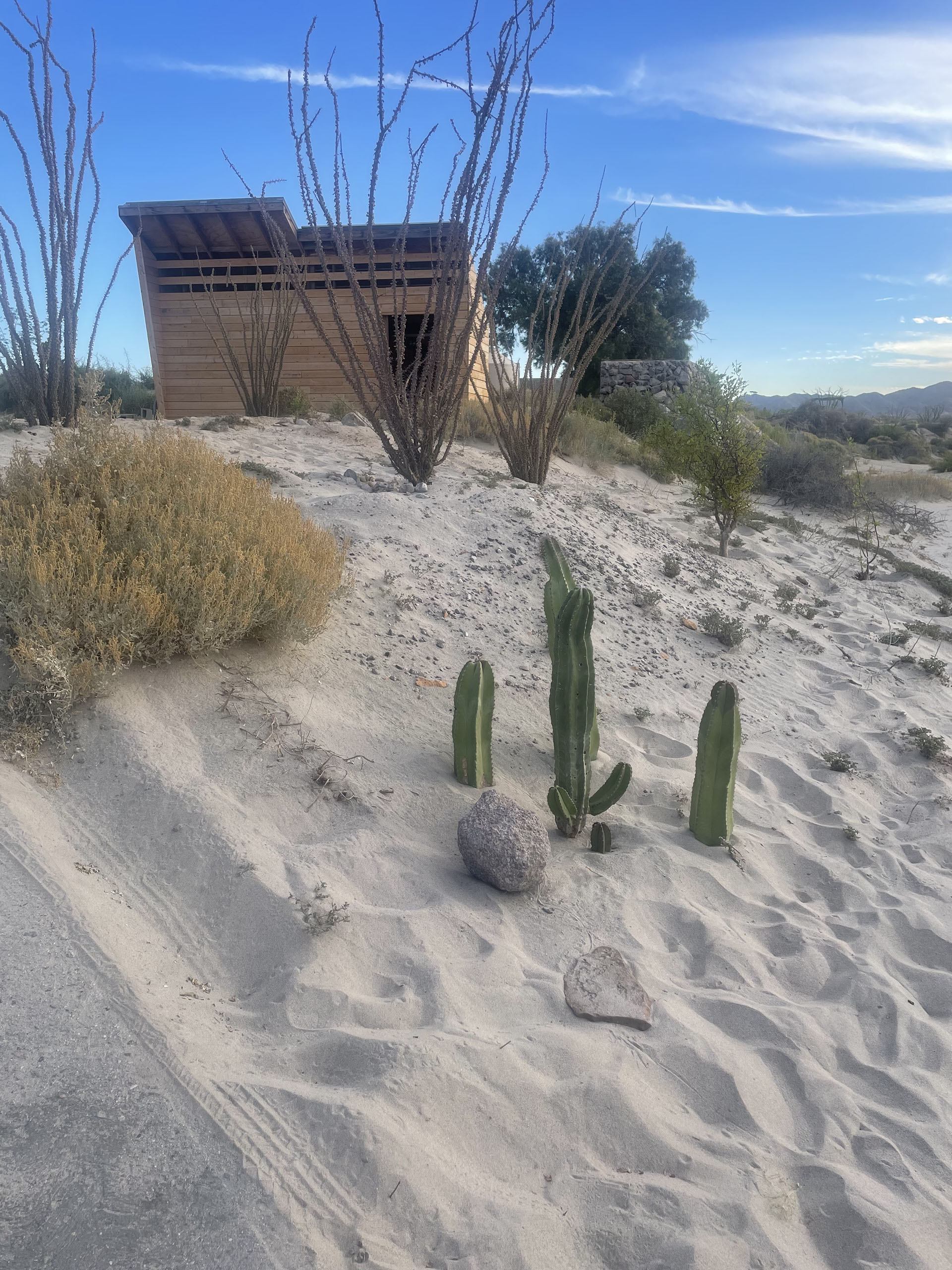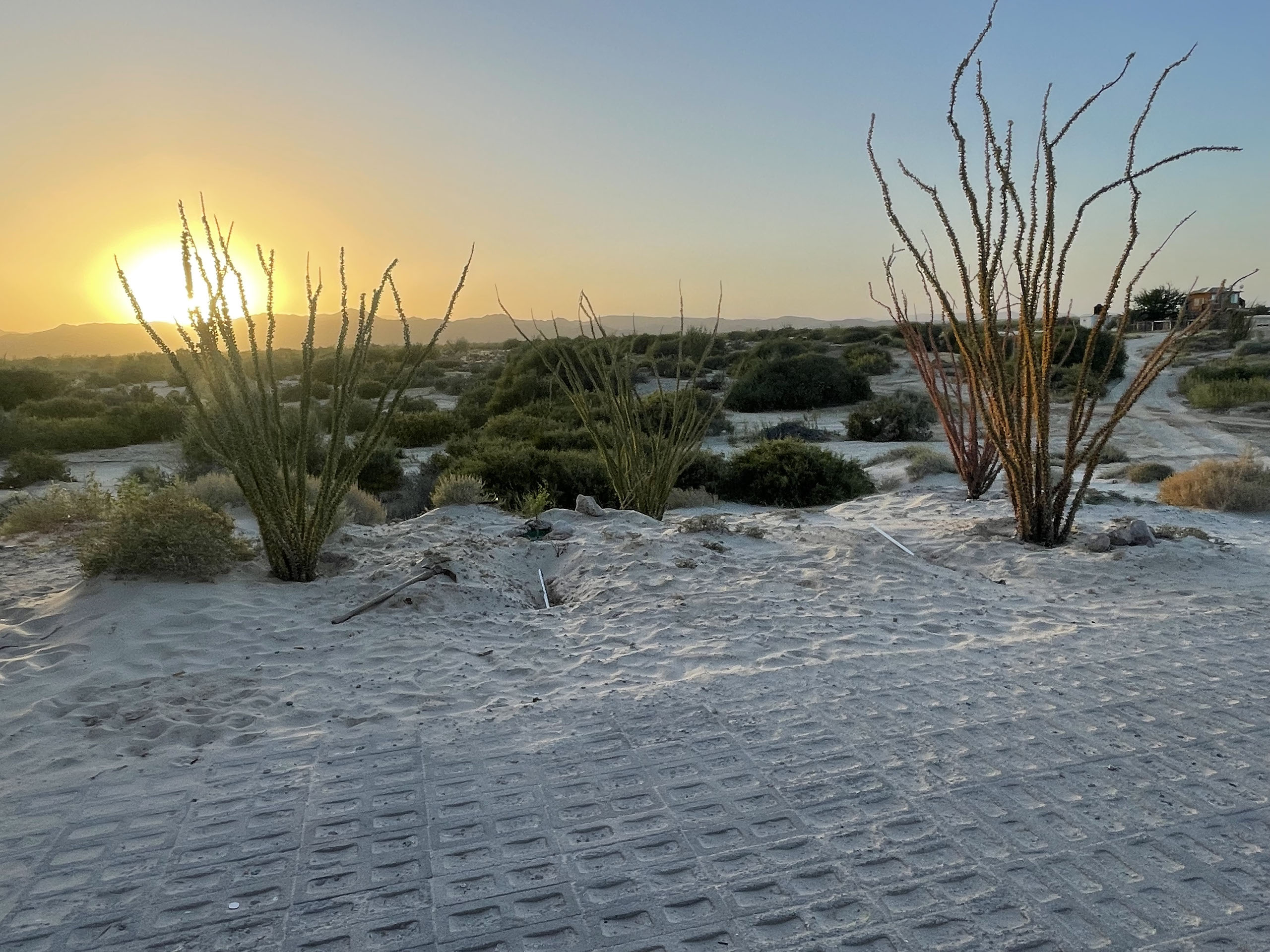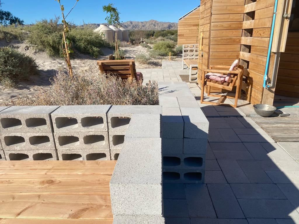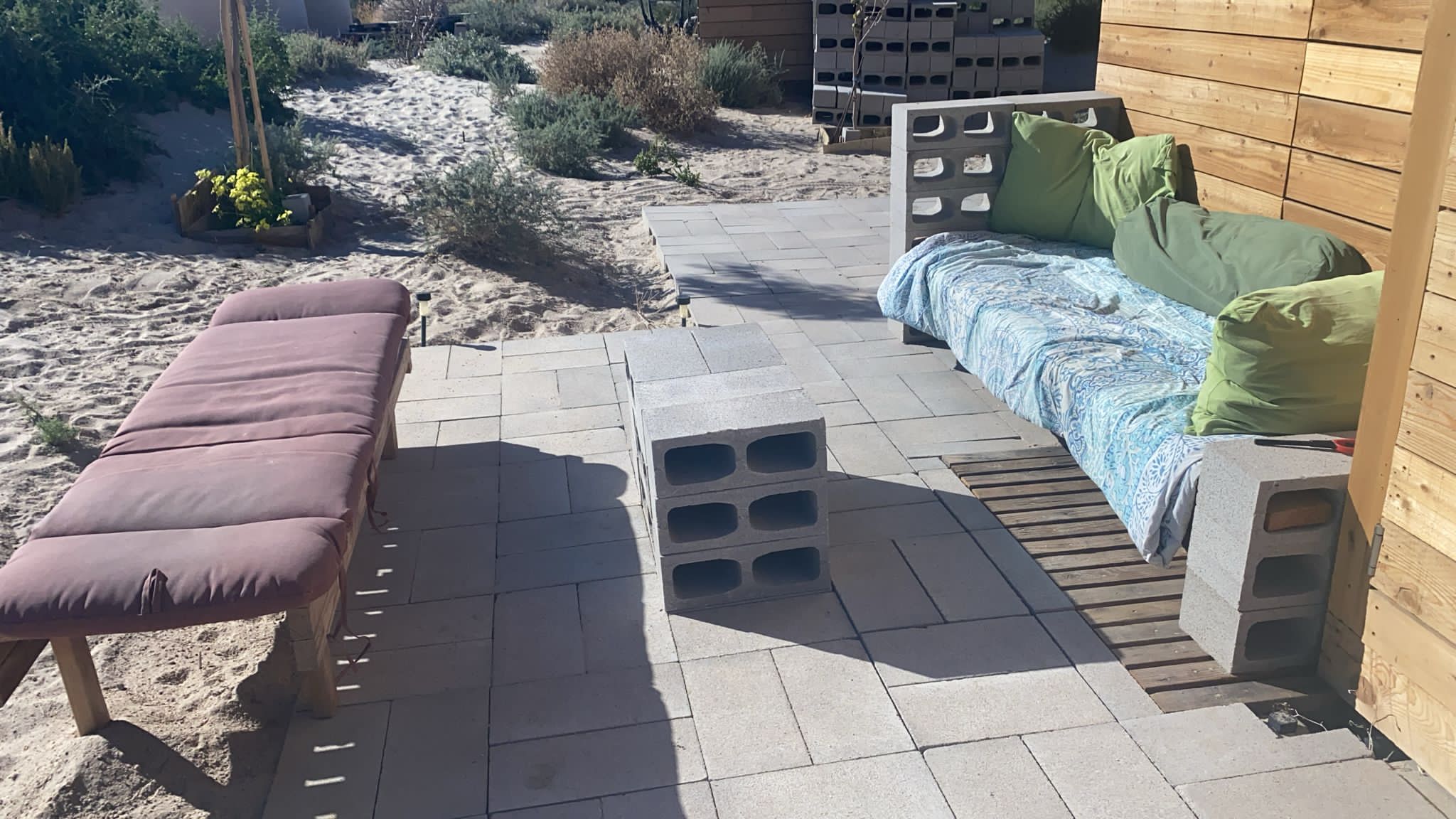 Sand in front of the Cube graded and ready for the cement block patio extension in 2022