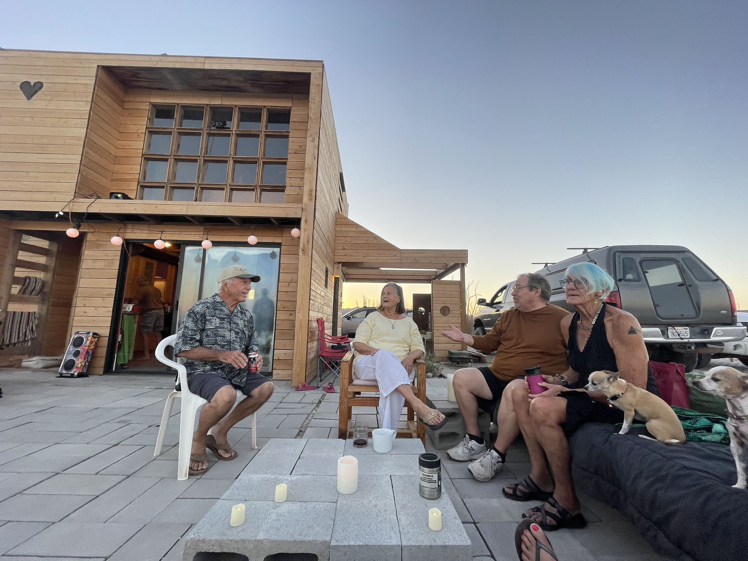 Outdoor furniture in action during a sunset social gathering at the Cube