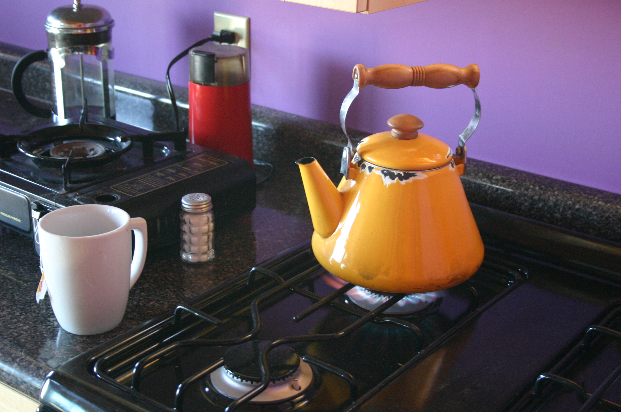 A cup of tea is called for after finishing the kitchen. No need for the camp stove anymore