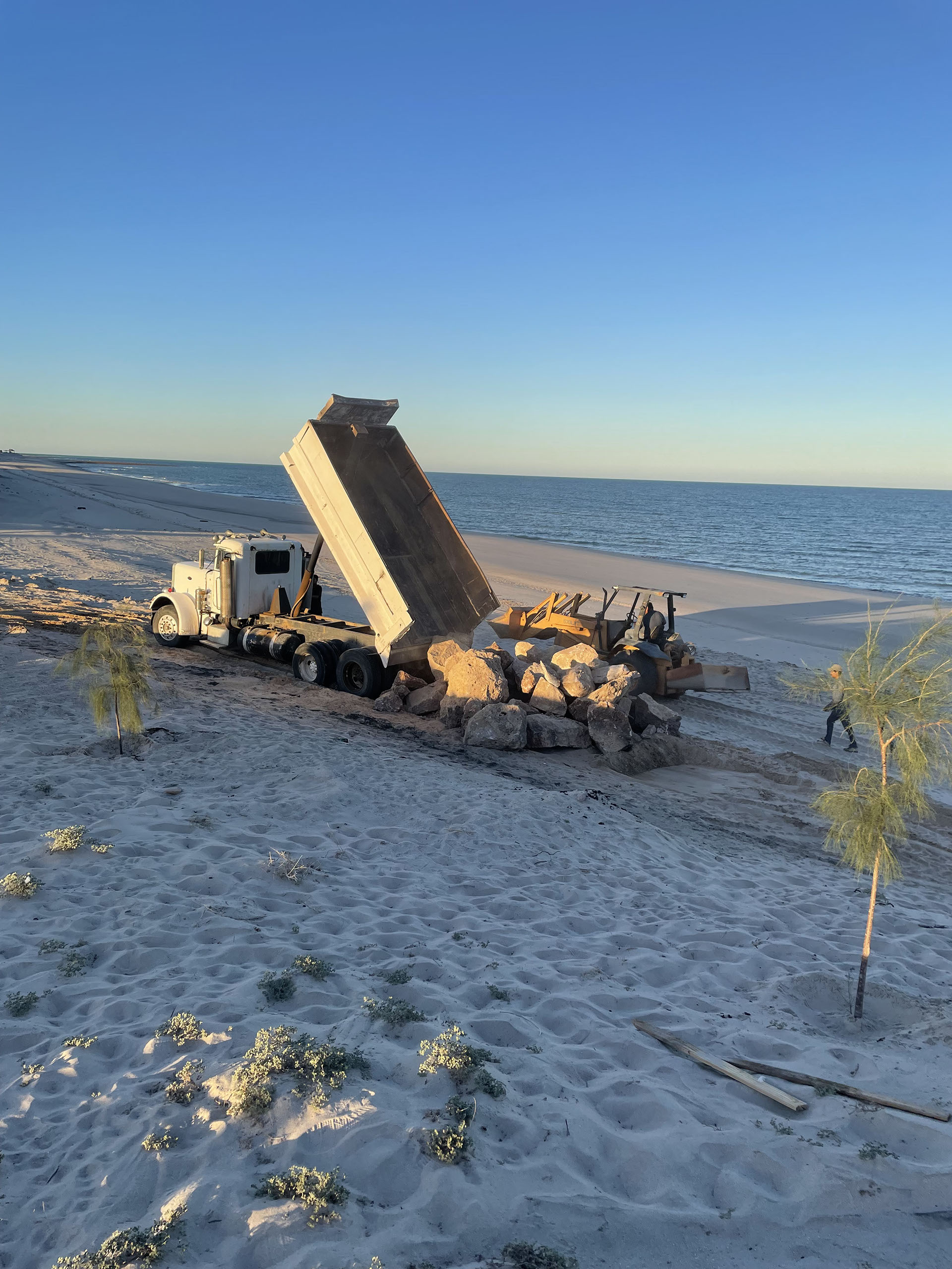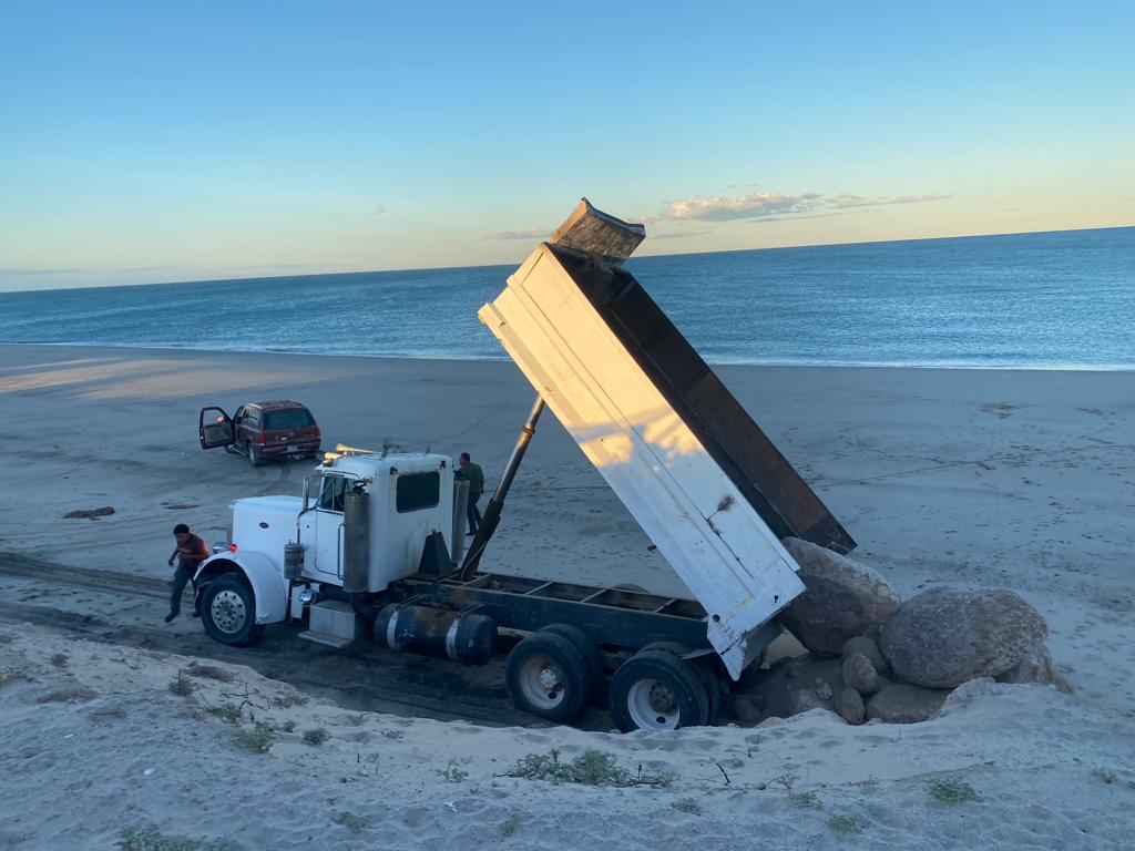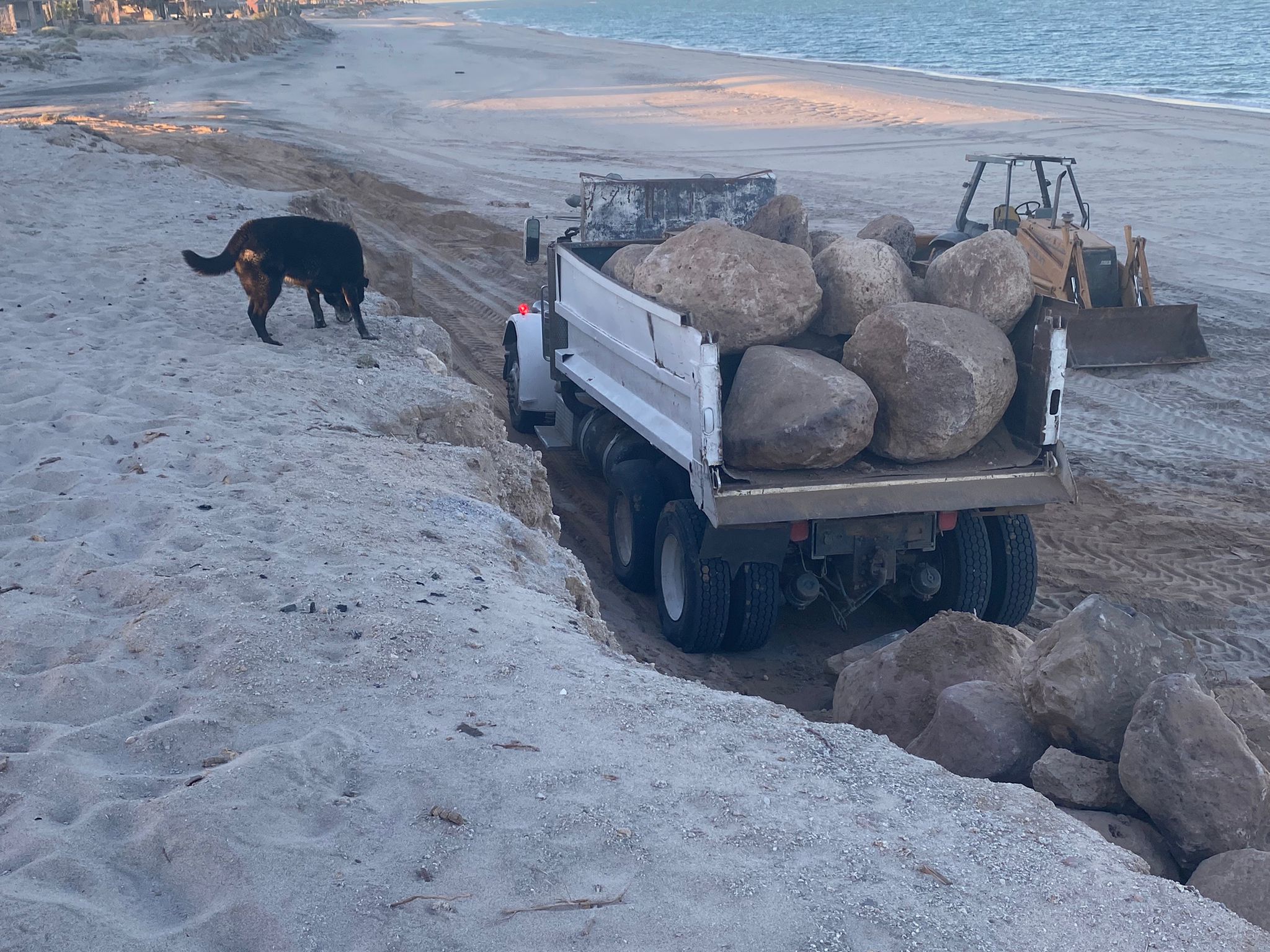 Dumping the first load of boulders