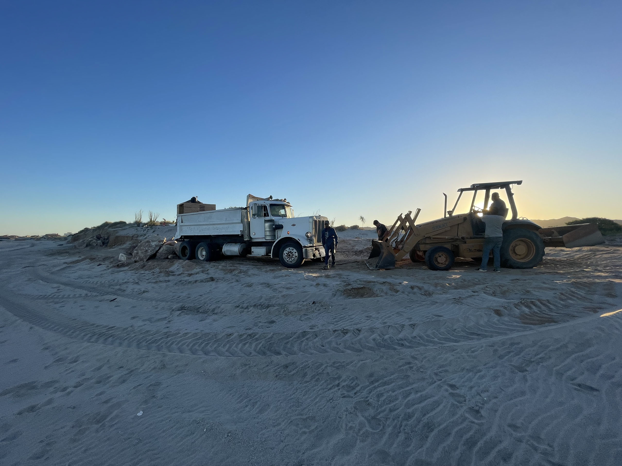 Grading the wash to allow dump truck access