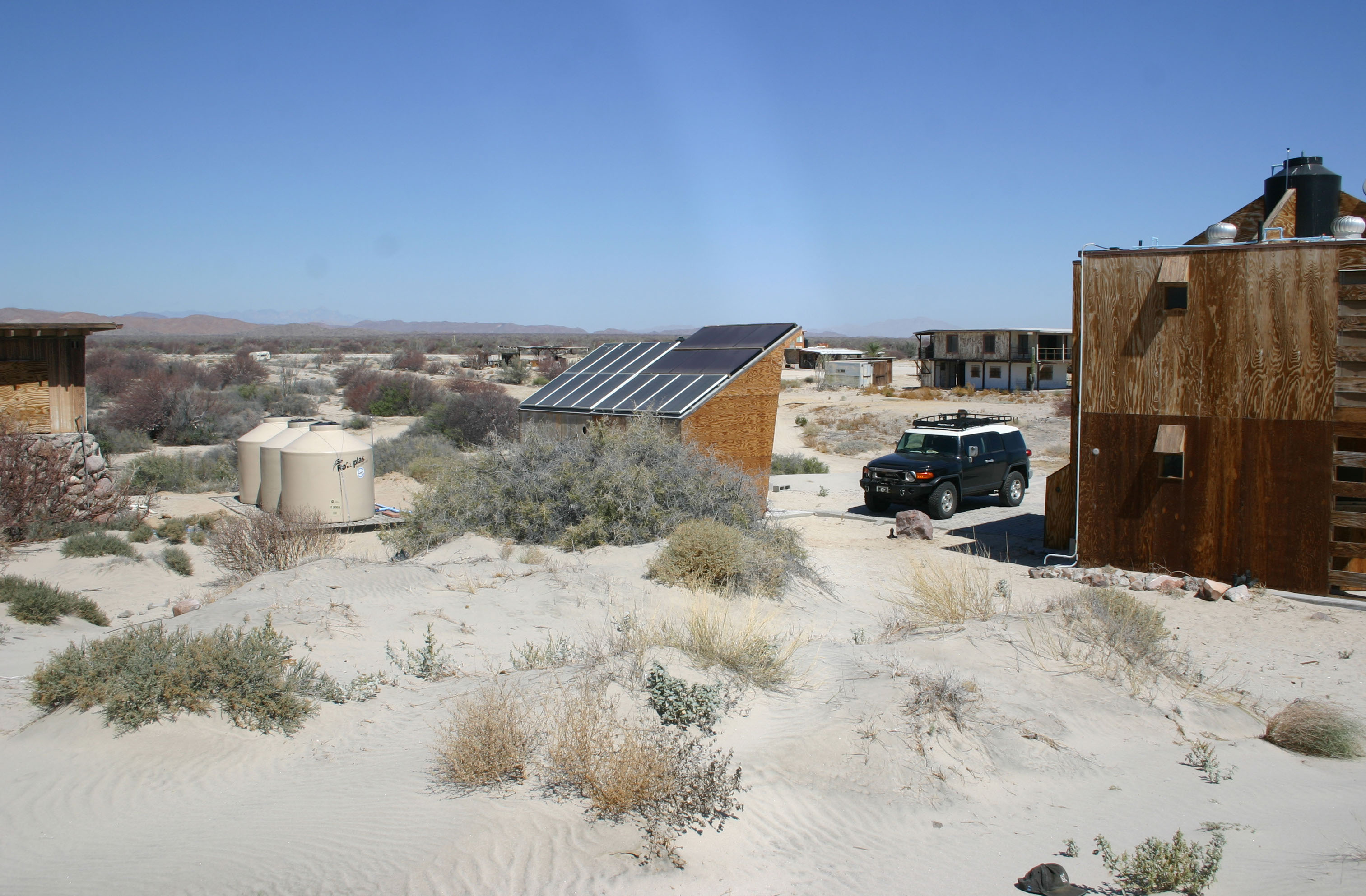 The water supply from the tank farm enters the Cube via the blue pipe under the corner of the propane hutch