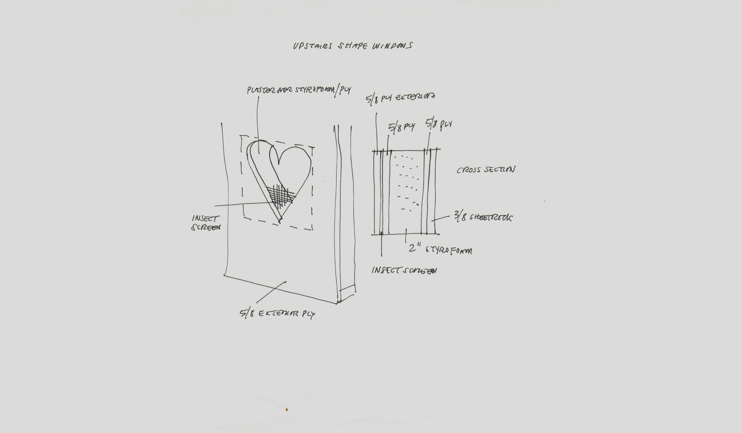 Working sketch for the shape windows with cross section detail