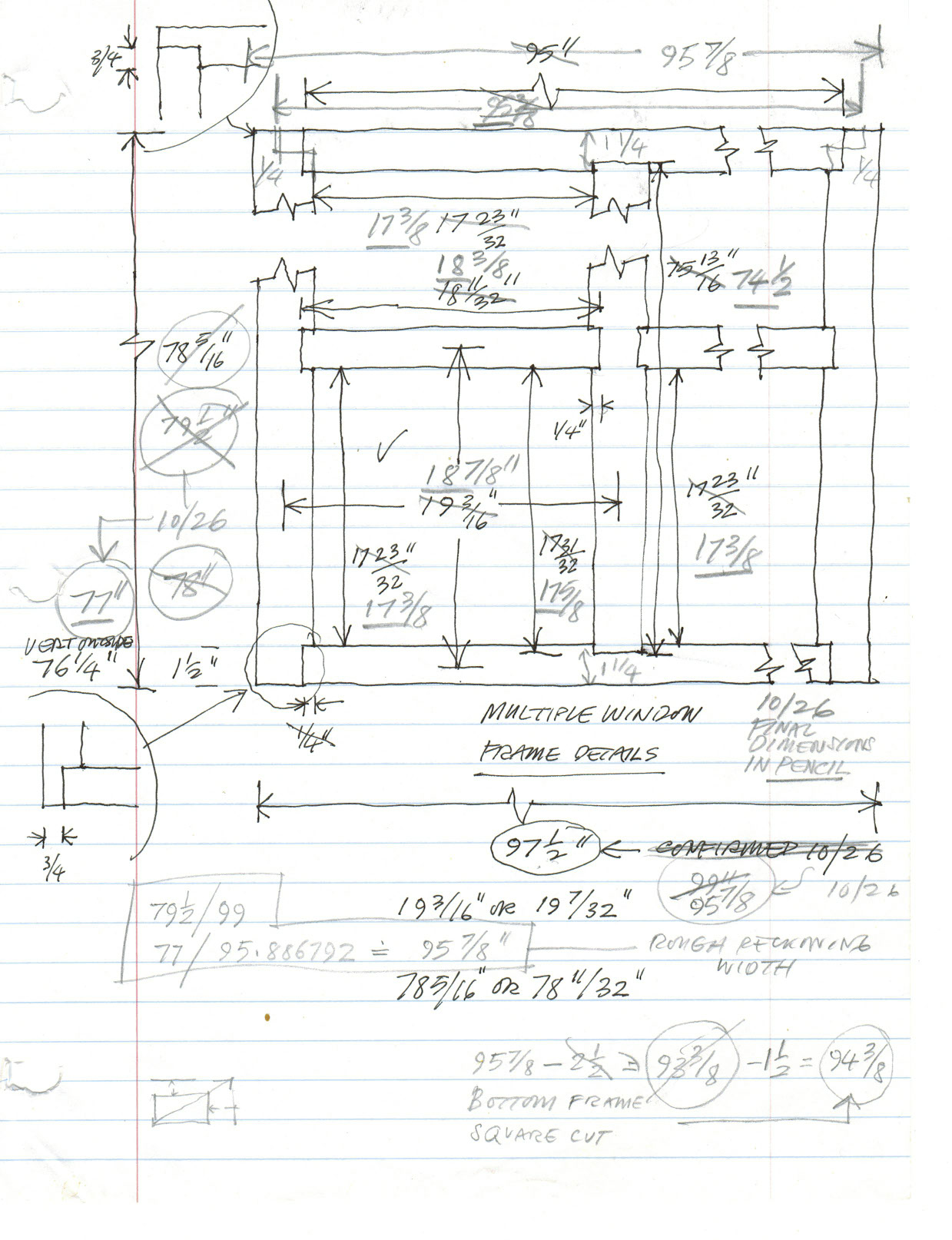 Measure twice, cut once. Working sketch for framing the twenty pane East window