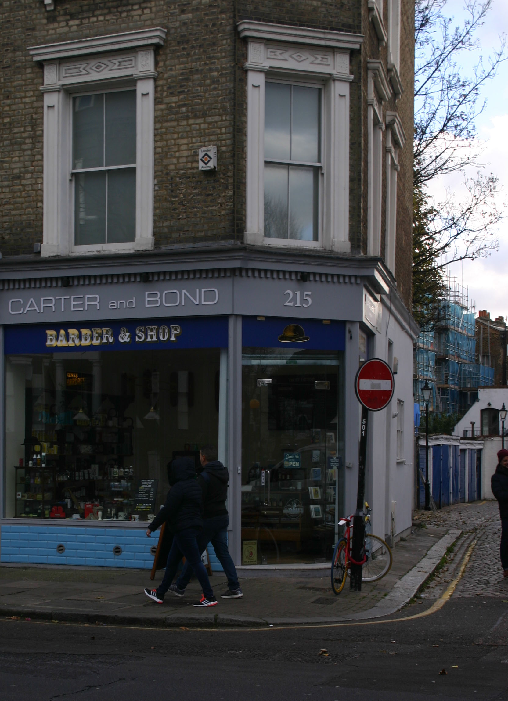 The Carter and Bond Barbershop street corner in Notting Hill, London