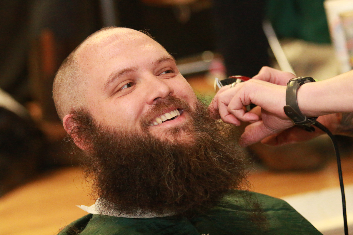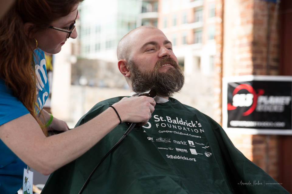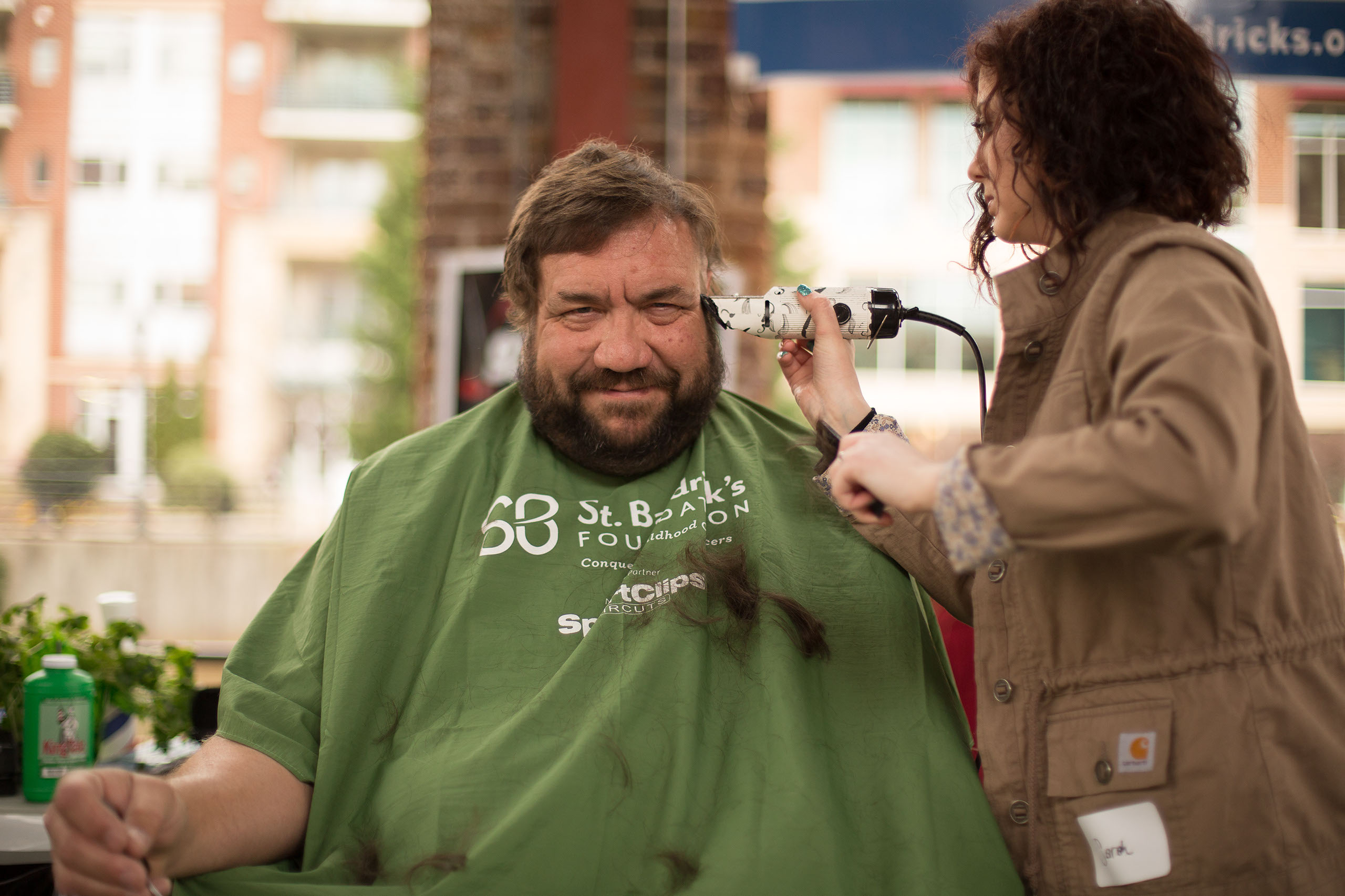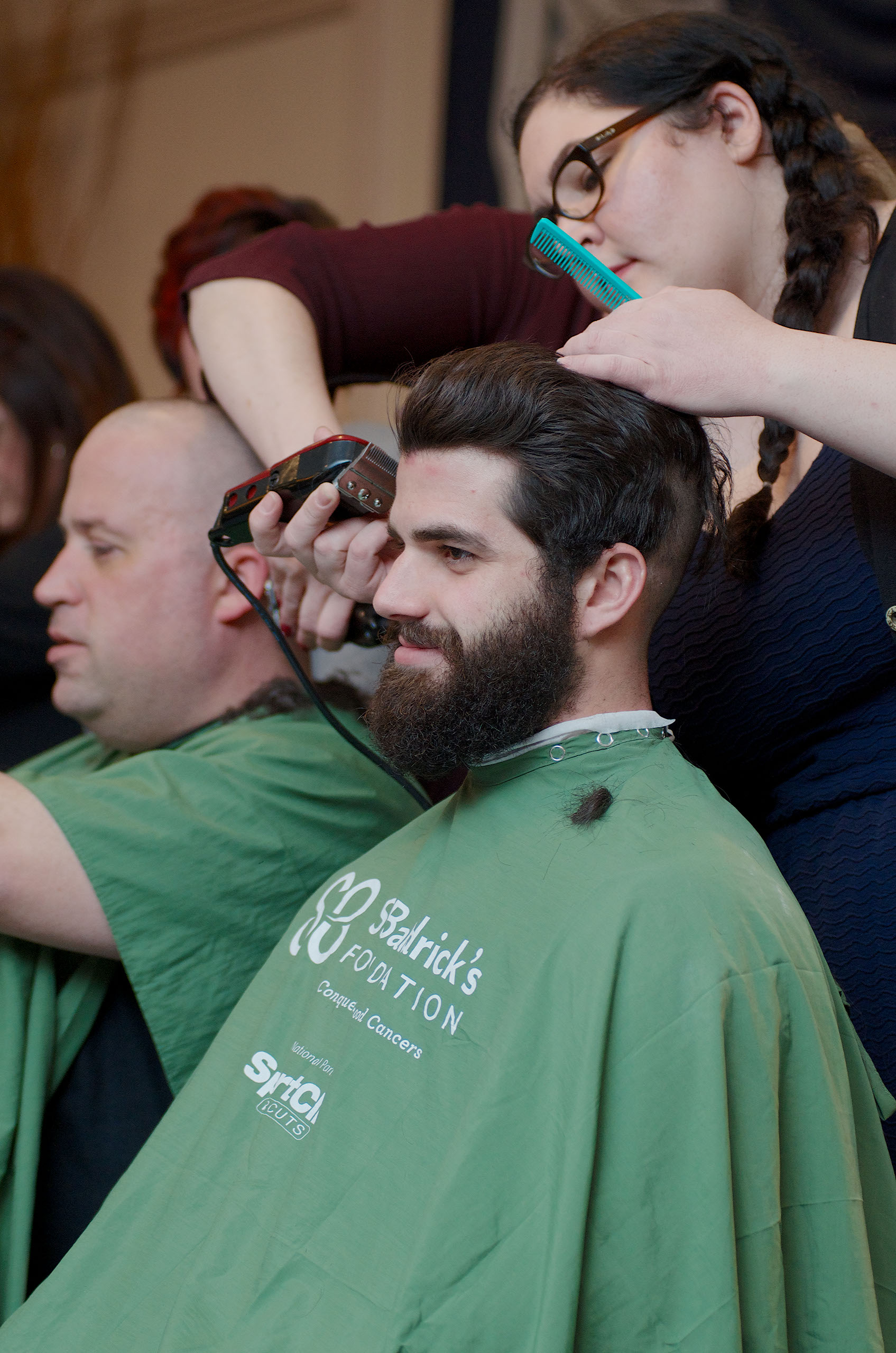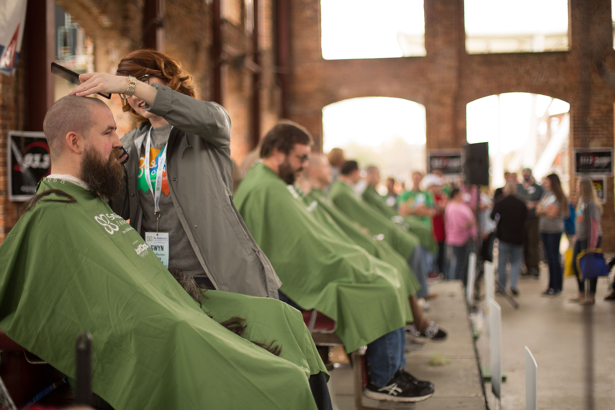 The men in the following series of photos have gallantly sacrificed their hair (but not their whiskers!) for a good cause. The St. Baldrick's Foundation is a not-for-profit organization with the aim of raising funds to help find cures for children with cancer. The name of the foundation is not associated with a recognized Saint of the Catholic Church, but is founded on word play and appropriation of the title of sainthood. Volunteers sponsored by family, friends, and employers shave their heads in solidarity with children who typically lose their hair during cancer treatment in order to raise funds.